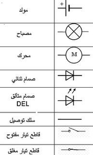 التبيانة الكهربائية تمثيل مبسط لعناصر الدارة الكهربائيةباستعمال الرموز الإصطلاحية لمكوناتها. ويتضمن الجدول أسفله بعض الرموز.