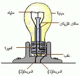 يتكون المصباح أساسا من : - سليك من التنغستينTungstene - حبابة زجاجية فارغة من الهواء لتفادي احتراق السليك. - ساقان فلزيتان . - قعيرة. - عقب. تكون القعيرة والعقب مربطي المصباح لذلك نسميه ثنائي قطب Dipôle
